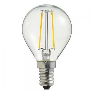 Klar LED-lampa med en E14-sockel. Färgtemperaturen är 2200k och ljusflödet på 120 lumen och den är dimmerkompatibel.