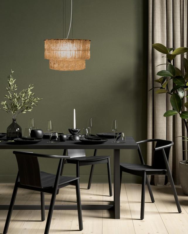Aneta Belysnings Abelone taklampa i retrodesign kombinerar metall och bärnstensfärgat glas med isstruktur. Släpper ljus uppåt och nedåt samt filtrerat sidoljus för varm, mjuk spridning. Perfekt som blickfång över matbordet eller allmänbelysning i vardagsrummet. Passar både klassiska och moderna hem. Välj Abelone för tidlös elegans och funktionell ljusfördelning.