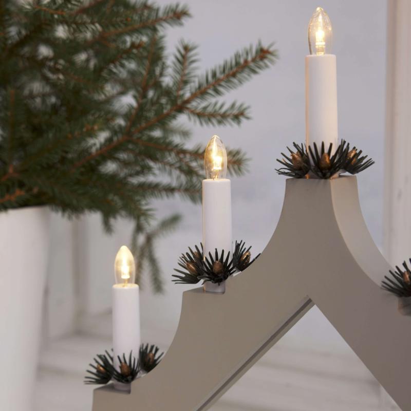 Härliga ljusmanschetter med små söta guldkottar. Fina dekorationer att placera på 5- och 7-armade ljusstakar. Endast avsedd för elektriska adventsljusstakar och passar ej stearinljusstakar.