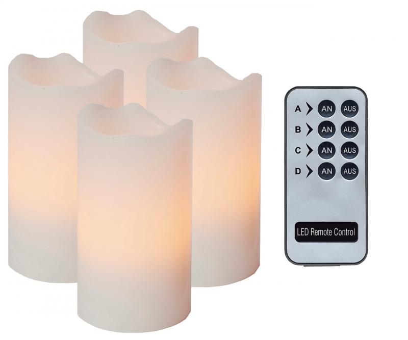 Ett härligt litet set med 4 stycken ljus som alla är 10 cm höga och drivs med batteri, perfekt att använda till adventsljusstaken. Tänder och släcker gör du enkelt med den tillhörande fjärrkontrollen.