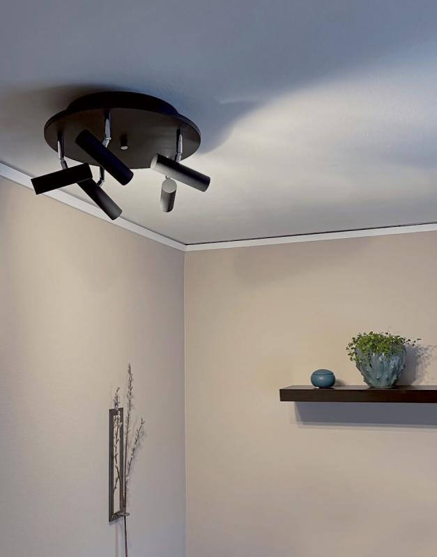 Kolla in coolingen! Vi bara älskar Artic serien från Aneta. En serie med stilrena spotlights med ordentligt med ljus och krokupphäng för en snabb och smidig installation. Artic finns i en rad olika modeller så kika gärna runt på de olika tills du finner rätt modell för dig. Stilren slimmad design med 6W Led i varje spot med en ljustemperatur på 3000K och 540 Lumen per ljuskälla. Här ser du Artic i vad vi kallar för en rondell, det vill säga en rund bas mot taket i svart med detaljer i blank krom med hela 5 riktbara huvuden.