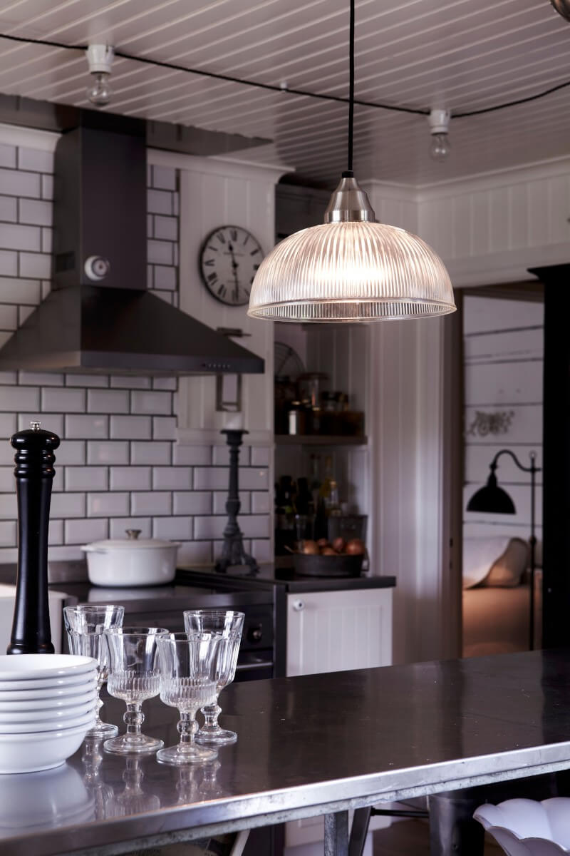 Markslöjd taklampa Åsnen. Detaljer i borstad stål med skärm av klart pressglas, tjusigt!. 1,2m sladd med takkåpa för krokupphäng.