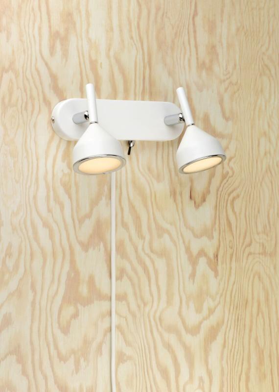 Bell vägglampa från Markslöjd. Design Monika Mulder. Vitlackerad metall med bländskydd i akryl och kromade detaljer. 2*3W integrerad LED.