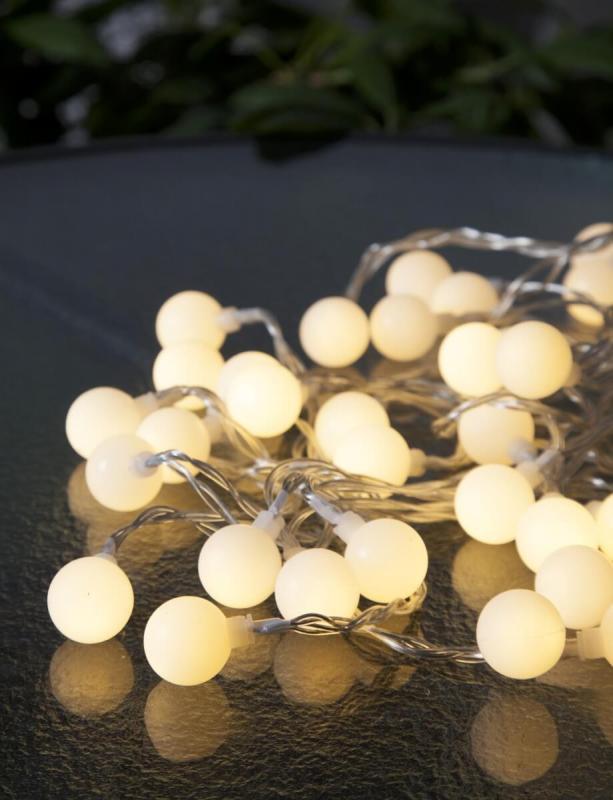 Ljusslinga med 50 LED-ljuskällor i härligt mjukt varmvitt sken för utomhusbruk. Dekorera partytältet, kalaset och terrassen med denna vackra ljusslinga. Slingan är 7,35 meter lång med transparant kabel.