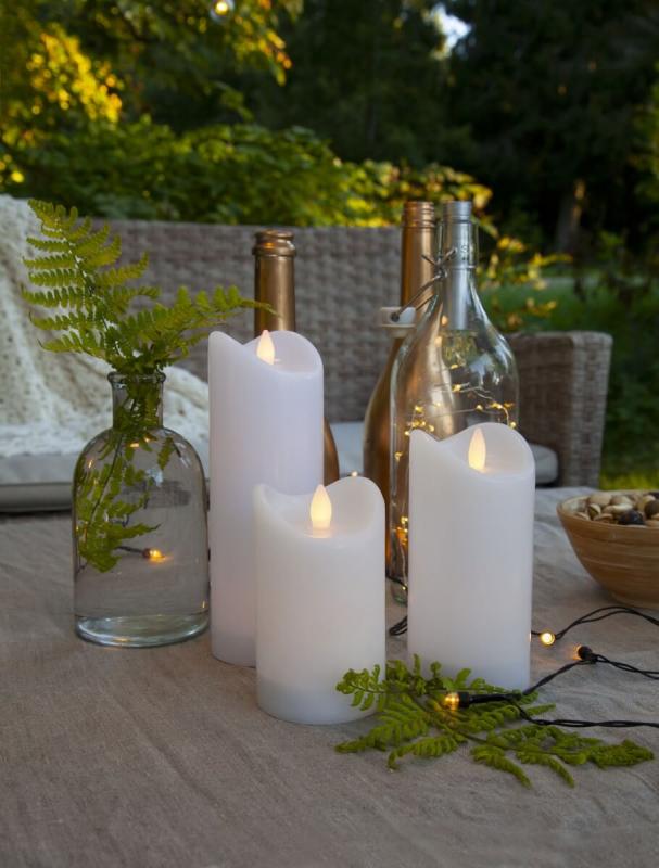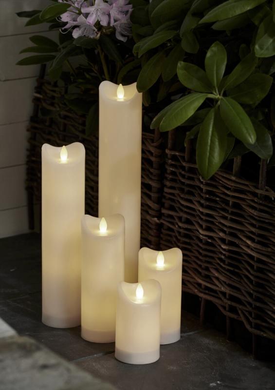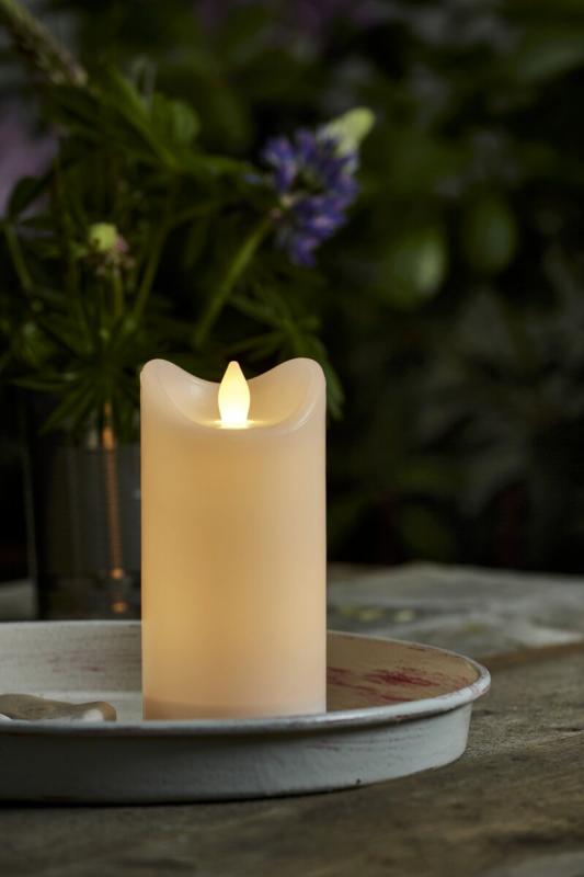 Batteridrivet LED-blockljus med varmvitt mysigt sken för utomhus- eller inomhusbruk. Ett verklighetstroget ljus att ha i exempelvis lyktor och som dekoration. Ljuset är gjort av plast för att säkerställa att det inte smälter om du placerar det utomhus i en lykta. Givetvis med timerfunktion så du enkelt kan ställa in när ljuset ska lysa. Ljusets höjd är 15cm.