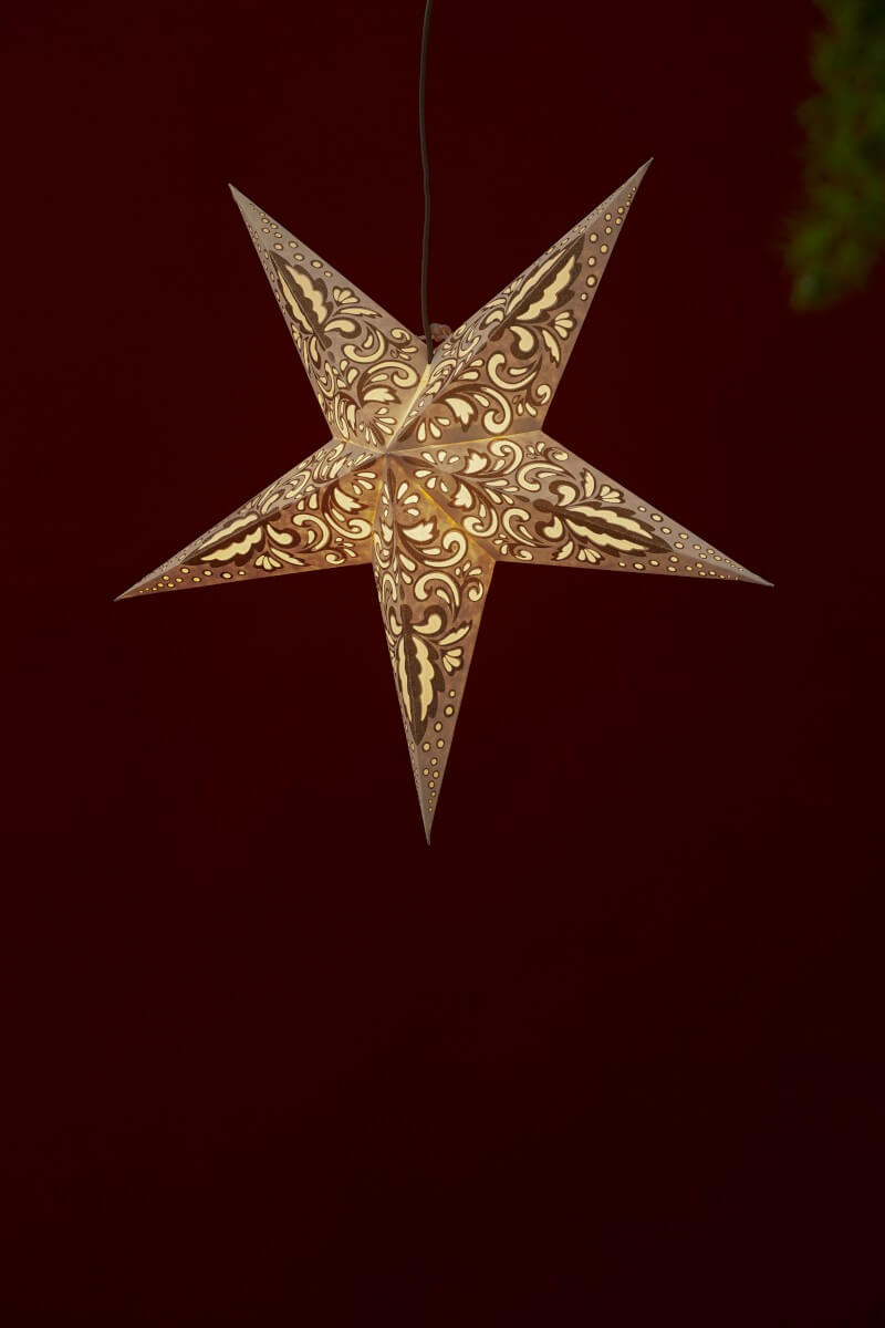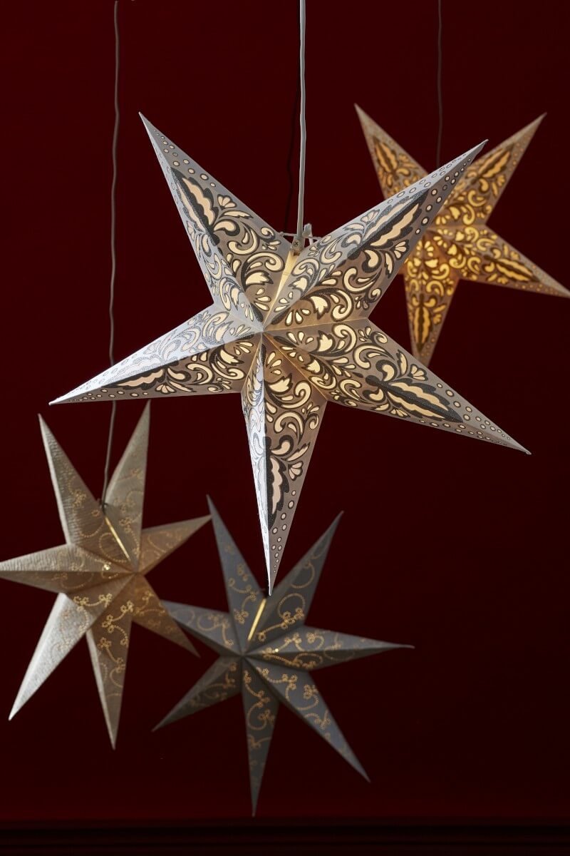 Såååå härlig pappstjärna att hänga i fönstret! Har du ett stativ så går det lika bra att sätta den på en lampfot men det ingår dessvärre ej.