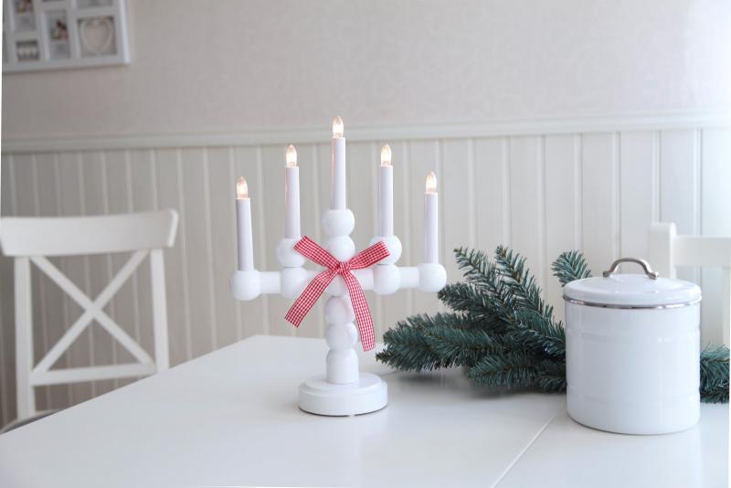 En liten söt vit träljustake, en klassiker som står sig lika väl nu som då, här med en söt liten rosett