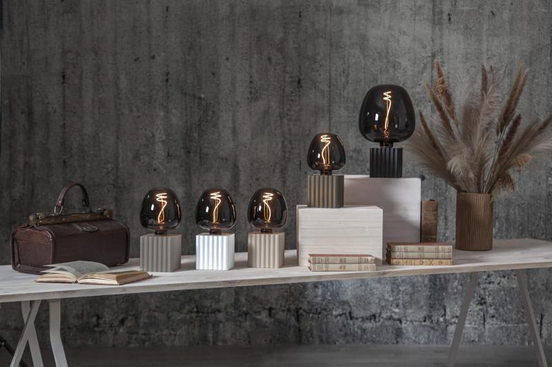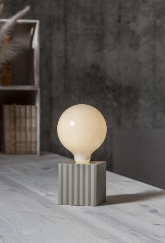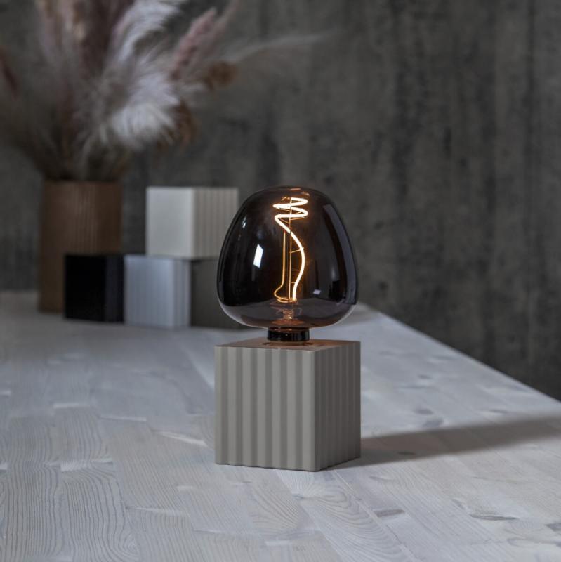 Elefantgrå lampfot med ribbat strukturmönster från välkända Star Trading, tillverkad av trä med E27 sockel. Kombinera lampfoten med en snygg dekorations ledljuskälla för ett elegant intryck. Gör sig bra både på bord och i fönster.