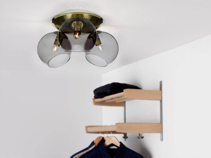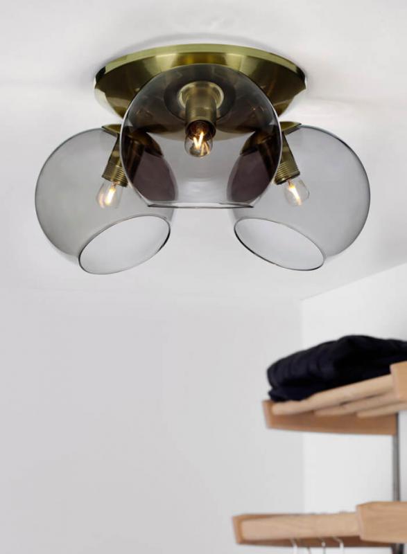 Capella takplafond från Cottex i borstad mässing med 3 stycken läckra rökfärgade glaskupor med plats för varsin E14 ljuskälla. Kombinera med en snygg dekorations-LED för att sätta din personliga stil på underverket. Givetvis levereras hon med takkroksupphäng för snabb och smidig installation.