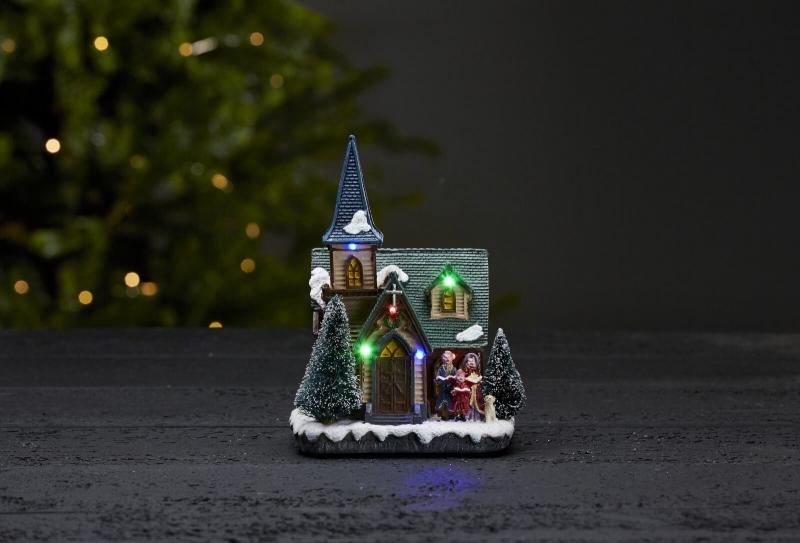 Så vacker batteridriven kyrka med härligt färgade Led lampor. Givetvis med timerfunktion.