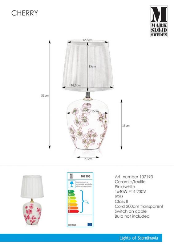 CHERRY Bordslampa 48cm Vit/Rosa
