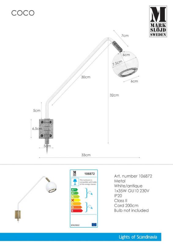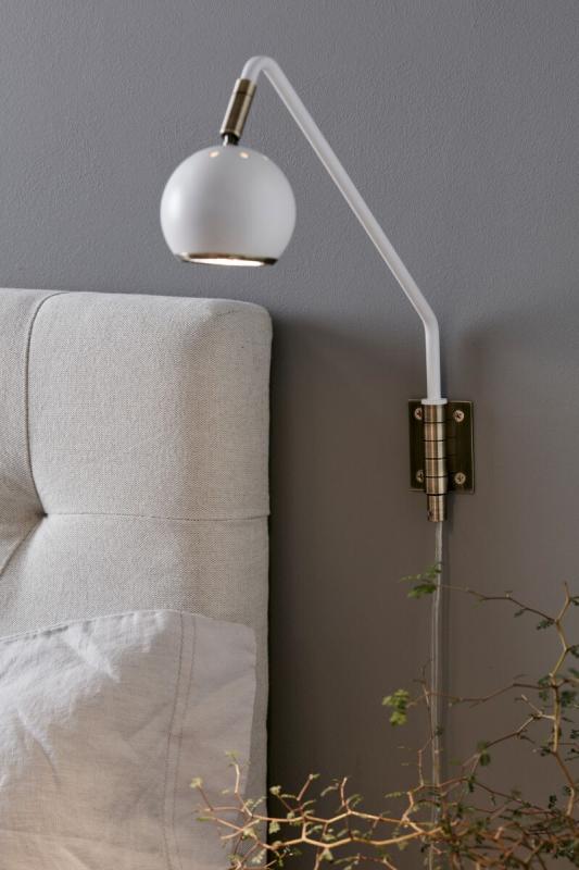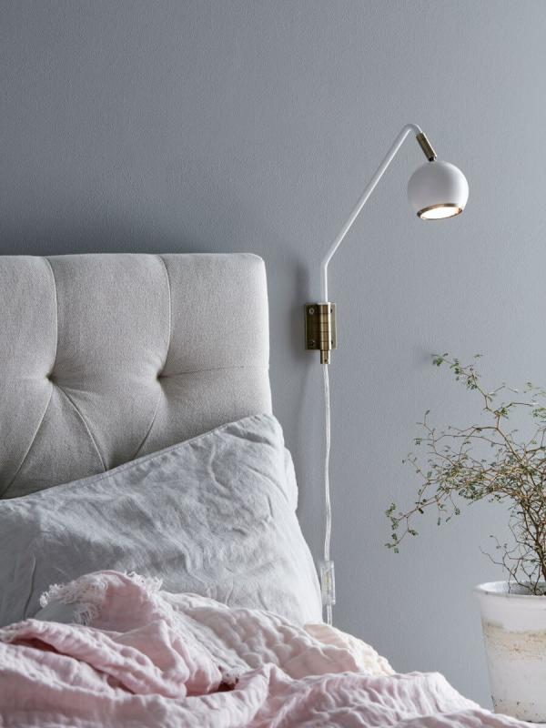 Vägglampan Coco Vit från Markslöjd en kul liten rackare med gångjärn som väggfäste som en extra liten detalj! Perfekt som sänglampa gärna då med en GU10 LED.