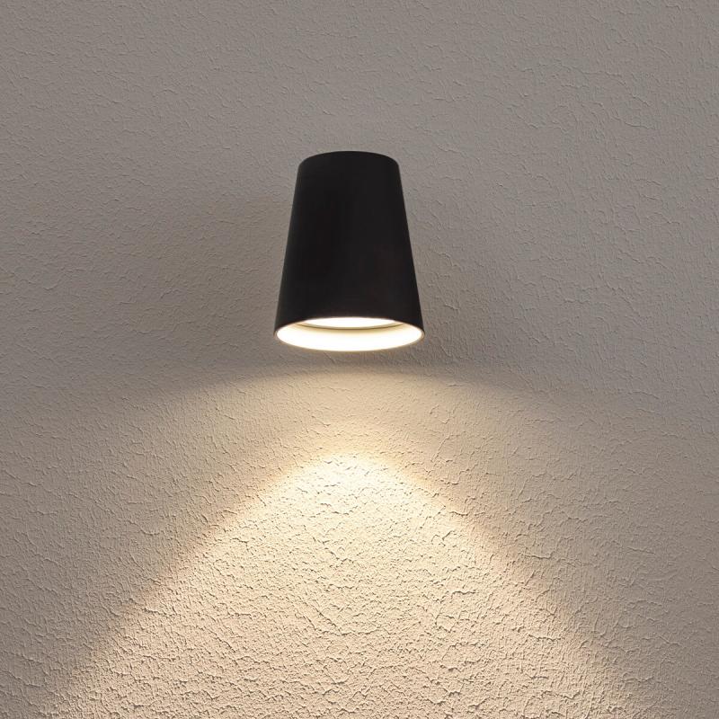 En nätt Antracitgrå utomhusarmatur i stilren konformad design från hide-a-lite. LED COB med reflektoroptik ger en asymmetrisk ljusbild som lyser upp både vägg och mark. Så enkel att montera tack vare separat bakstycke med dubbla genomföringar och vidarekopplingsbar snabbplint. Distanser för utanpåliggande kabeldragning medföljer. IP65-klassad med tålig pulverlack för tuffa miljöer. Cone har dessutom Inbyggt drivdon med ställbar ljusnivå via DIP-switch (en liten dold knapp som gör att du kan välja om du vill att lampan ska lysa med 100% ...60%). Möjlighet till dimring finns med externt drivdon, se bruksanvisning