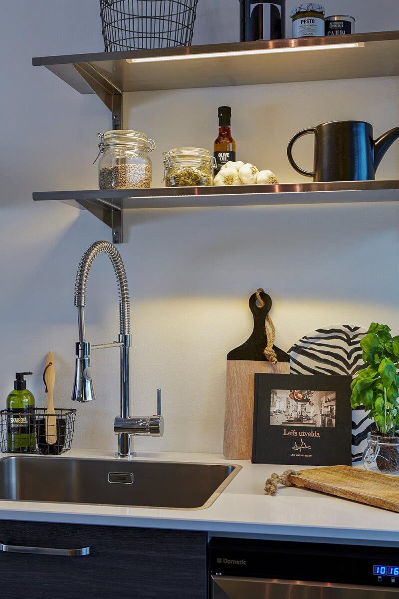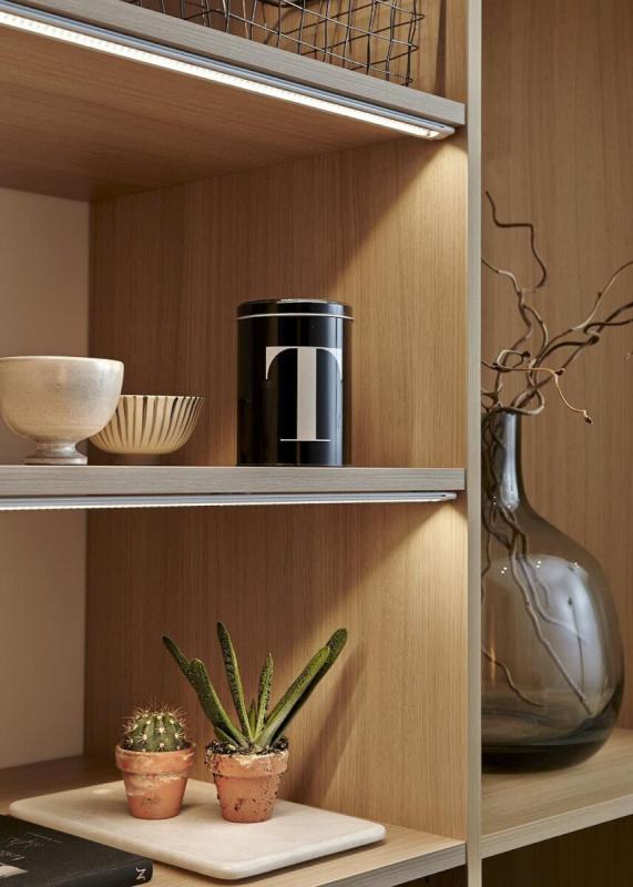 Markslöjds LED-list Connect. Listerna finns i tre olika längder för största valmöjlighet. Du kan blanda storlekar och koppla samman då varje diod lyser lika starkt oavsett längd på listen. Dimbar. 250 Lumen. 120° spridningsvinkel. Varmvitt ljus 3000K, här är listen 100 cm.