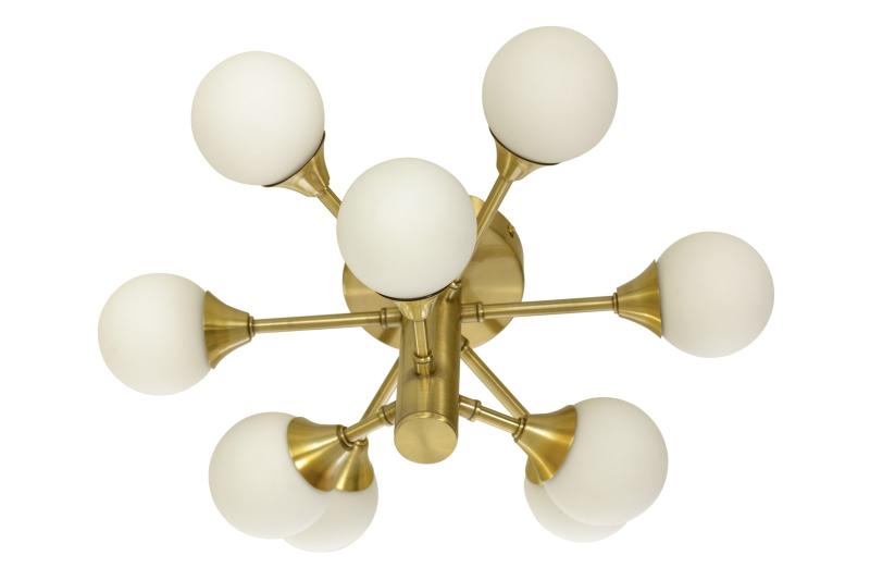 Cosmos badrumslampa från Aneta Belysning. Ett mästerverk och ett smycke för ditt badrum 😁 Med sin stomme i Matt mässing och hela nio stycken opalvita bollar lyser hon med enkelhet upp även dem lite större badrummen. Cosmos finns även i svart/Opal för badrum.
