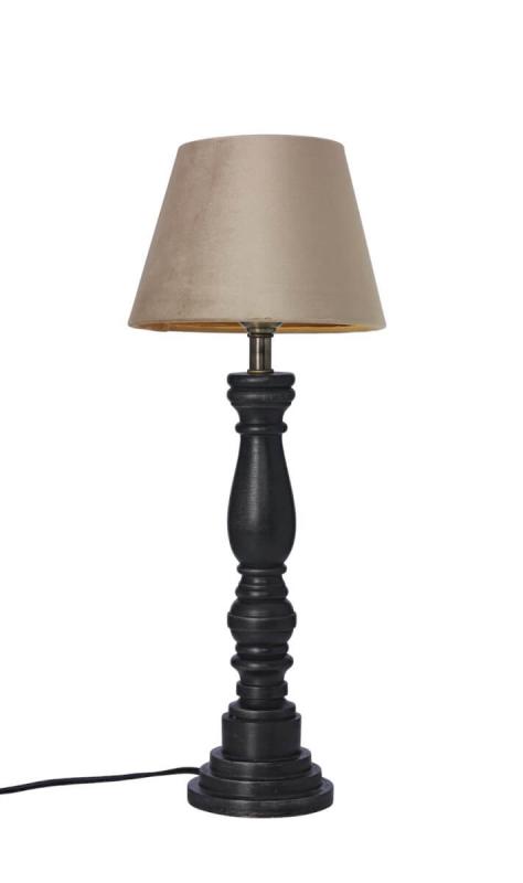 Vacker lös snidad träfot i svart från Cottex med lamphållare i borstad mässing. Kombinera underverket med en vacker skärm av eget val.