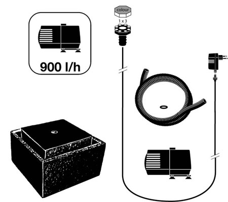 Dekorset Sonora levereras som komplett set med behållare, pump med behållare och stenliknande kub i vacker antracit färg.