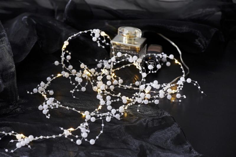 Liten nätt batteridriven led ljusslinga med massa små söta vita pärlor, 20 stycken ljuspunkter av dewdrops. Kan användas vid diverse dekorationer, vid tex dukningar, blomsterarrangemang, i fönster, på väggen osv. Den inbyggda timern gör det lätt att ställa in när produkten ska lysa.