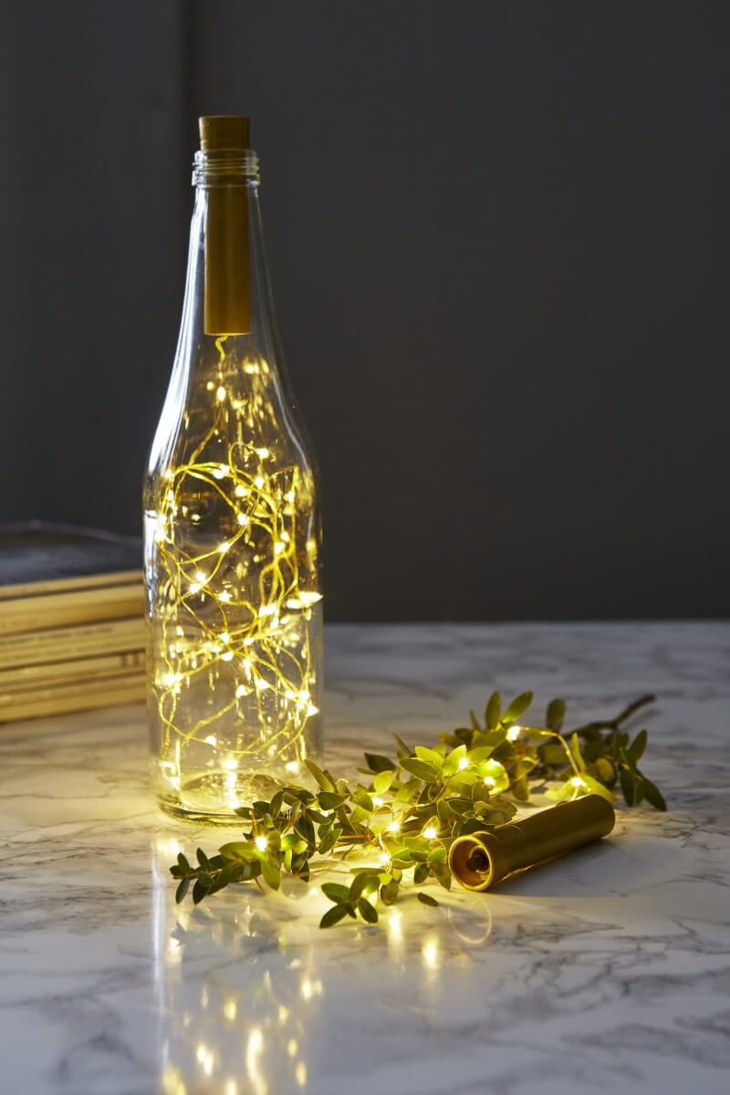 Härlig batteridriven ljusslinga i mässing med dew drops. Slingan har 15 varmvita LED-ljuskällor som ger ett härligt sken. Perfekt till diverse dekorationer som ex. dukningar, blomsterarrangemang och i fönster m.m. Batteriboxen är formad som en tub för att passa bl.a. i glasflaskor.