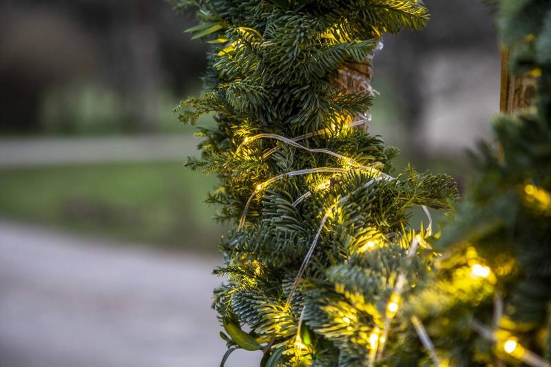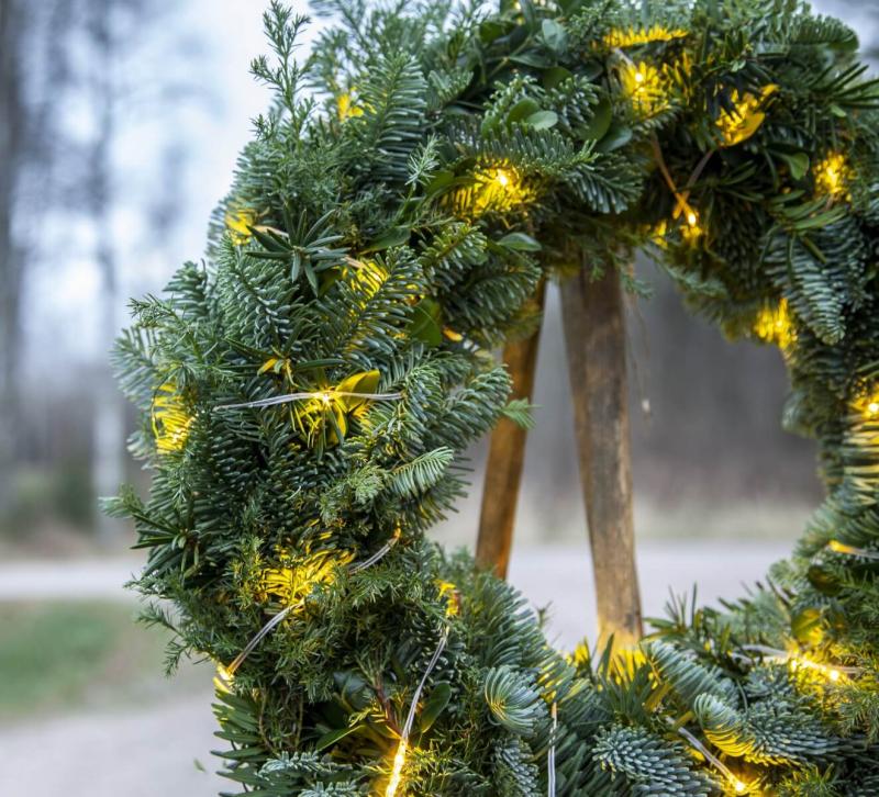 Tunn platt batteridriven slinga från Star Trading med små söta ljuspunkter för utomhusbruk, perfekt och enkel att använda i träd, buskar, kransar, trappräcken ja lite överallt. Denna ljusslingan har transparent kabel med 96 varmvita LED, 7,5cm mellan varje lampa ger en slinga på ca 7 meter. Batteribox med timerfunktion så att du lätt kan ställa in när du vill att den ska lysa och 8 olika blinksekvenser varav en självklart är med fast sken.