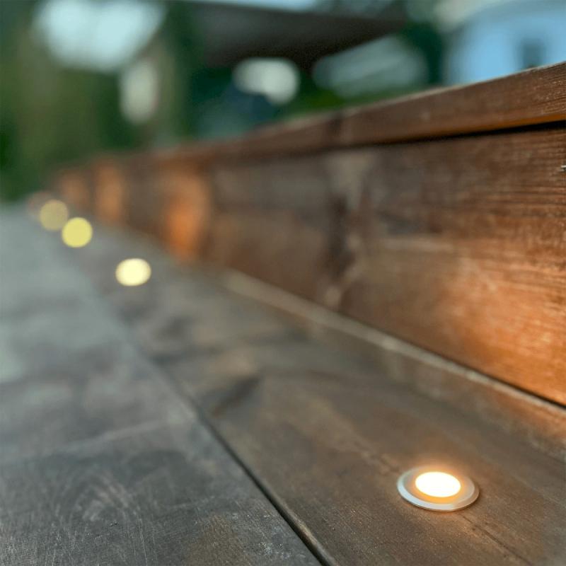 Dexter är en lite mindre decklight som passar för infällnad i altan eller stensättning. Decklighten fungerar även utmärkt som markör vid trappsteg eller som avslut på en nivå i trädgården. Med Dexter decklight kan man skapa en härlig behaglig ljusstämning på en brygga eller varför inte längs en gång samtidigt som ljuset leder en framåt.