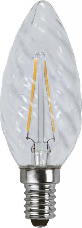 Vridet kronljus LED ljuskälla med E14 sockel. Ljuskällan har en färgtemperatur på 2700K och ett ljusflöde på 150 Lumen.