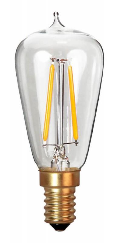 Klar LED-lampa med en E14-sockel. Färgtemperaturen är 2200k och ljusflödet på 120 lumen och den är dimmerkompatibel.