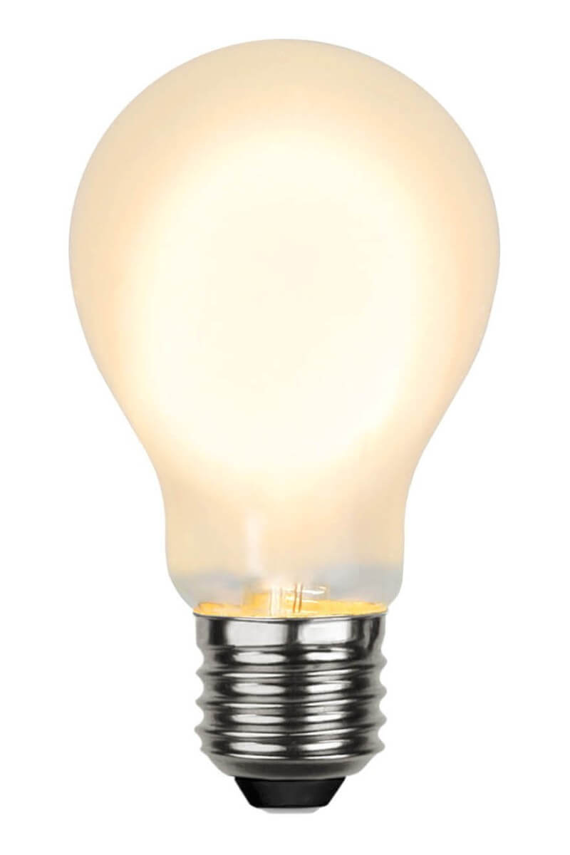Matt LED-lampa med E27-sockel. Dim to warm-tekniken gör att färgtemperaturen ändras så att ljuset blir varmare när ljusstyrkan dimras ned, som med en vanlig glödlampa. Du dimrar lamporna med en vanlig dimmer.