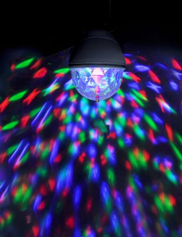 Discodags? Lampa med roterande ljus som skapar stämningen till discot! Passar till armaturer med E27-sockel och har RGB-ljusfärg.