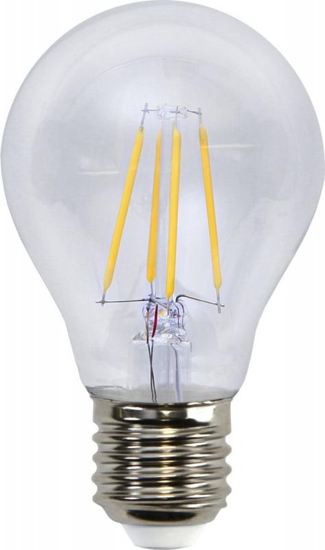 Klar filament LED-lampa med E27-sockel. Färgtemperaturen är på 2700k och ljusflödet är 470lm. Denna lampan är dimmerkompatibel.