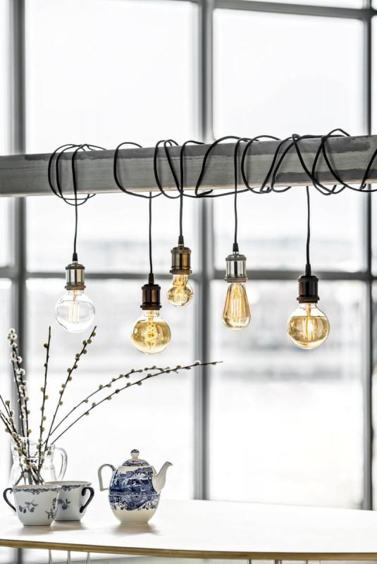 vackert designat lampupphäng i Antikfinish med hela 3,5 meter lång textilsladd.
