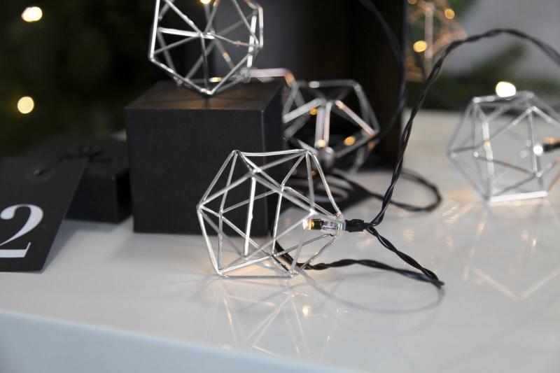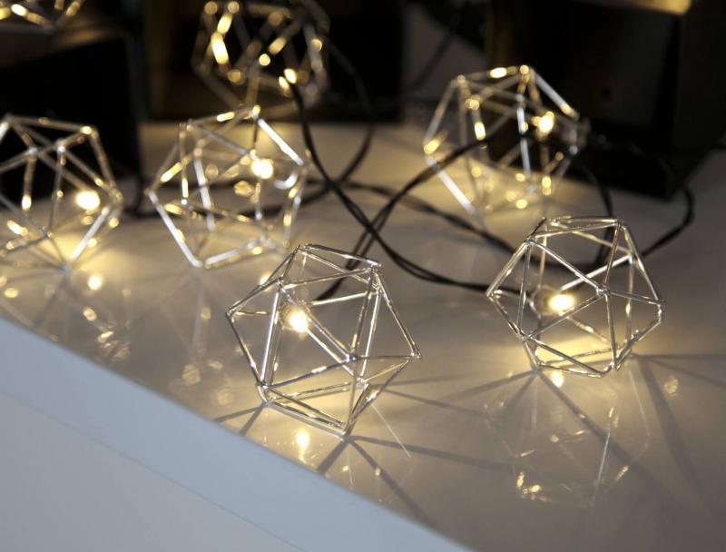 Edge Edge Edge, så söt liten slinga med 10 stycken kromdekorationer på svart kabel. Slingan lyser med ett varmt och behagligt sken, perfekt som dekoration både till vardags och till fest.