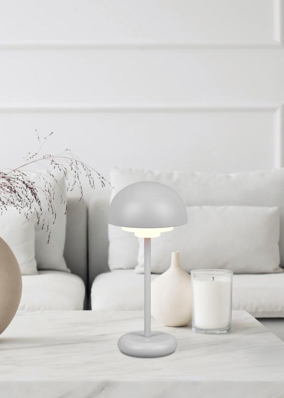 Med Elliot från TRIO får du en bedårande läckert grå bordslampa, som enkelt laddas via en USB-port. En praktisk kabel medföljer självklart! Detta lilla underverk har tre olika ljusstyrkor som du enkelt växlar mellan genom att "peta på foten".