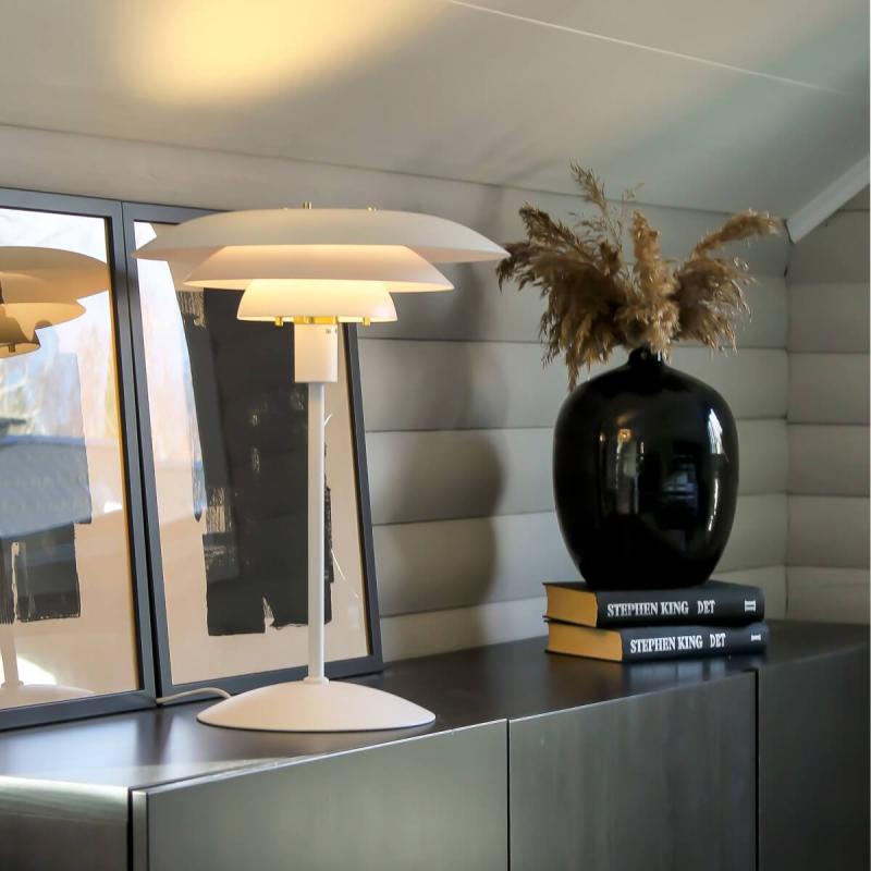 Lys upp ditt hem med Epsilon, den eleganta bordslampan som kommer att få ditt hjärta att lysa upp lika mycket som ditt rum! Med sina tre vitlackade skärmar sprider den ljus på ett elegant sätt utan att blända. Dessutom är den en sann stilikon med dubbla uppsättningar av dekorativa ringar och knoppar i krom eller matt mässing, vilket gör att du kan anpassa den till din personliga heminredningsstil. Och om du vill att Epsilon ska få lite sällskap , kan den enkelt kombineras med andra lampor i Epsilon-serien. Köp Epsilon idag och låt ditt hem stråla!