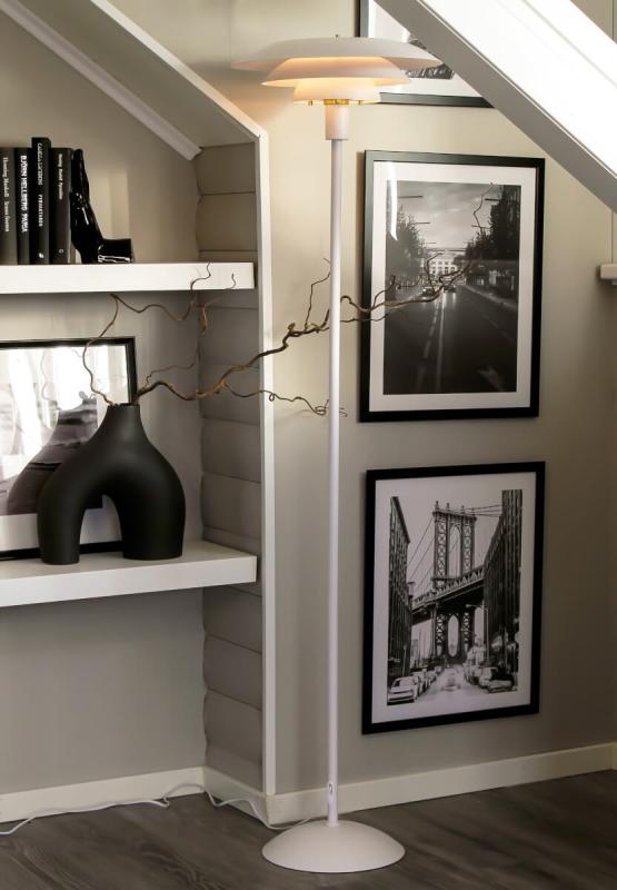 Kolla in den ljuvliga Epsilon golvlampan! Denna skönhet som med sina tre vitlackade metallskärmar sprider ett mjukt och förtrollande ljus som får varje rum att lysa med ett mjukt sken. Strömbrytaren sitter smidigt på lamphållaren så att du kan nå att tända och släcka den med lätthet. Men det är inte allt - med denna lampa följer dubbla dekorringar och knoppar så att du kan anpassa den till dina personliga stilval. Välj mellan krom och matt mässings detaljer för att göra den perfekt för ditt hem. Och det blir ännu bättre: kombinera den med andra lampor från Epsilon-familjen för att skapa en perfekt harmoni i ditt hem!