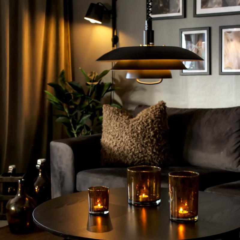 Gör plats för stjärnan i ditt hem, Klassiska taklampan Epsilon! Med sin hissfunktion kan du enkelt höja eller sänka den genom att dra i handtaget. Dess tre sammansatta skärmar i svartlackerad metall med vit insida fördelar ljuset på ett härligt sätt och ger en härlig atmosfär i rummet utan att blända. Du får också dubbla uppsättningar dekorringar och knoppar - välj mellan krom eller matt mässing. Epsilon är en höjdpunkt i vilket rum som helst och kan enkelt kombineras med andra lampor i Epsilon-familjen. Låt Epsilon ta din inredning till nya höjder!