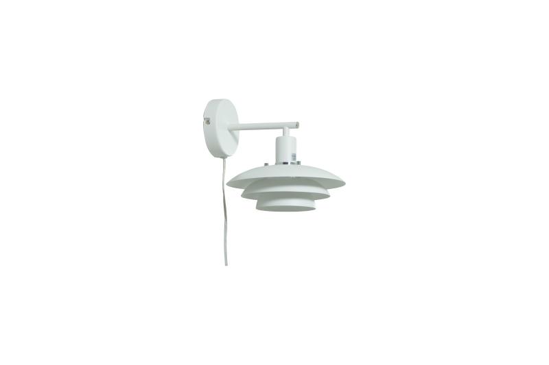 Epsilon vit vägglampa från Aneta Belysning har en klassisk design med modern känsla. Den tredelade metallskärmen sprider ljuset mjukt och bländfritt. Perfekt i hallen eller som sänglampa. Medföljande dekorringar och knoppar i krom och matt mässing gör det enkelt att anpassa stilen. Kombinera gärna med fler lampor ur Epsilon-serien.
