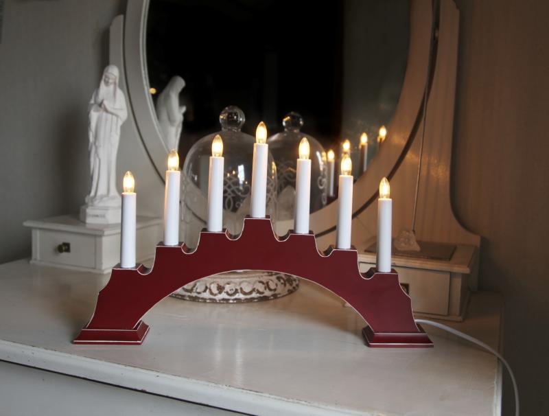 Enlite lägre röd träljusstake med 7 ljus som passar lika bra i fönstret som på diskbänken eller varför inte på en byrå?