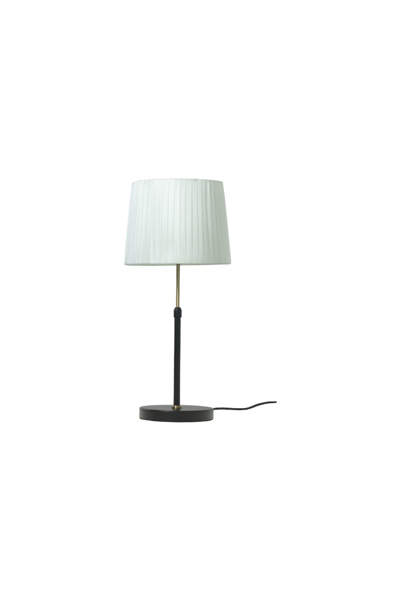 Ezai bordslampa från Aneta Belysning kombinerar elegans och funktion med justerbar höjd mellan 47–60 cm. Den svarta metallfoten med detaljer i matt mässing och textilskärmen skapar ett mjukt, stämningsfullt ljus. Perfekt som sänglampa eller fönsterlampa – anpassa höjden efter stil och behov för en personlig belysning.