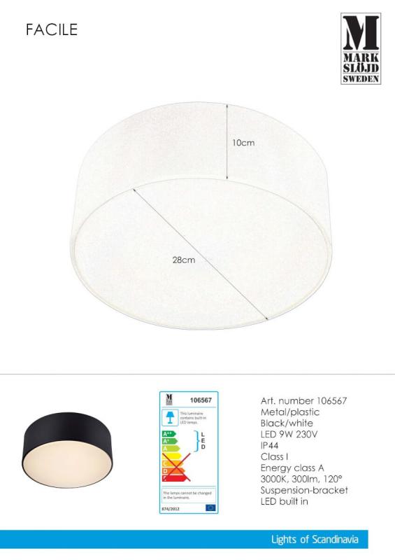 Så enkel men ändå så kaxig på något vis är Facile svart badrumsplafond från Markslöjd, missa inte att hen finns i 2 storlekar här ser du den stora på 28cm