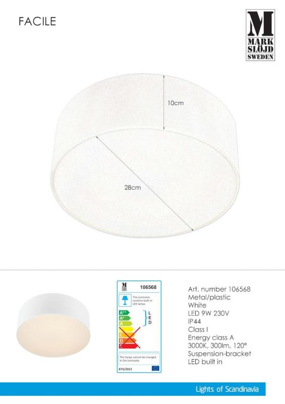 Så enkel men ändå så kaxig på något vis är Facile vit badrumsplafond från Markslöjd, missa inte att hen finns i 2 storlekar här ser du den stora på 28cm