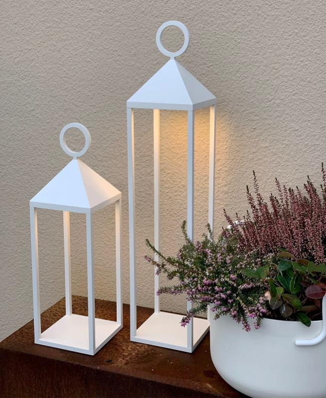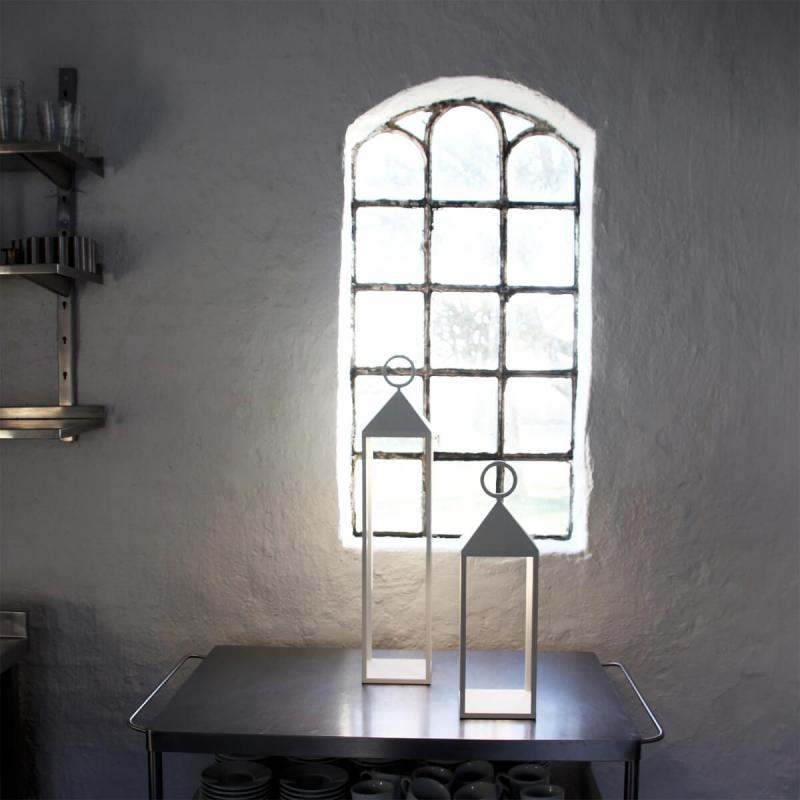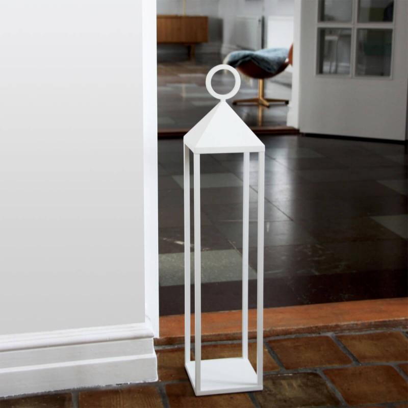 Batteridriven aplinvit lykta med en modern men traditionell skandinavisk formgivning. Eftersom lyktan är uppladdningsbar, blir lampan portabel och kan placeras fritt var man önskar. Batterilyktan gör sig lika ståglig framför en öppen spis inomhus, som utomhus på trappan vid exempelvis din entré. Passar även utmärkt till ett barnrum där sladdar som trasslar sig vill undvikas. Givetvis sätter lyktan stämning i trädgården till fest och umgänge under dygnets mörkare timmar.