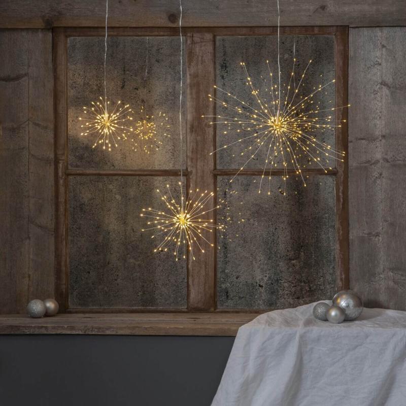 Vacker hängande dekoration i silver från star trading med små LED-ljuskällor som ger ett härligt ljus. Underbar dekoration för alla tillfällen så som jul, helger och fester. Firework är 16 cm och har hela 80 LED-ljuspunkter. Passar utmärkt som fönsterdekoration.