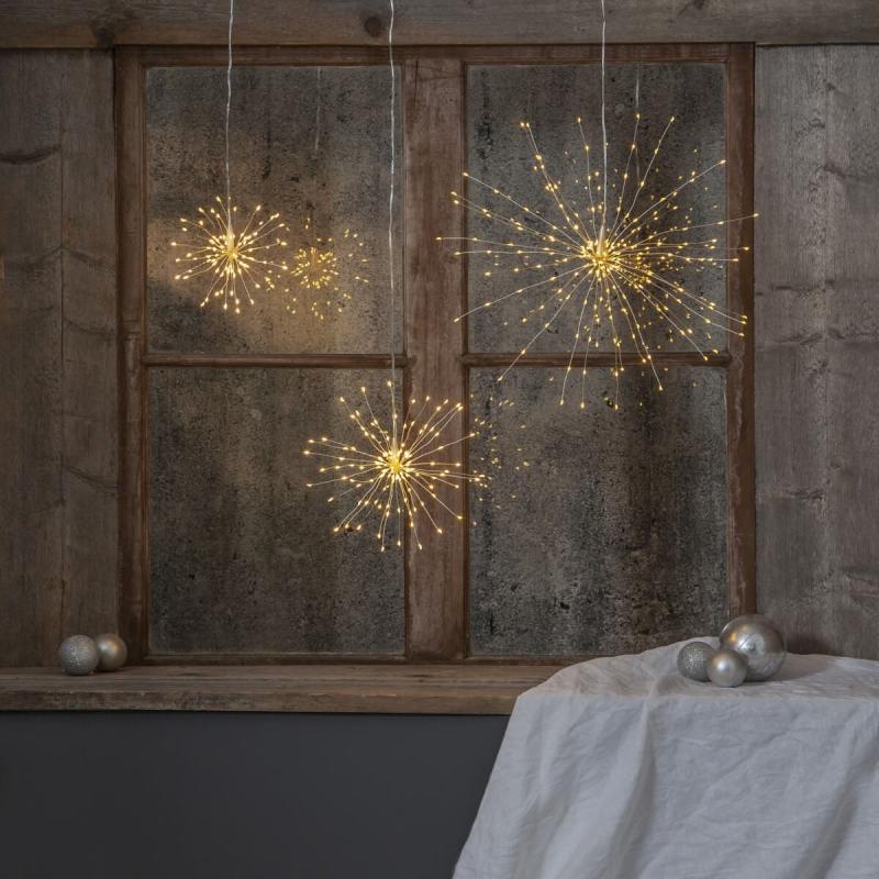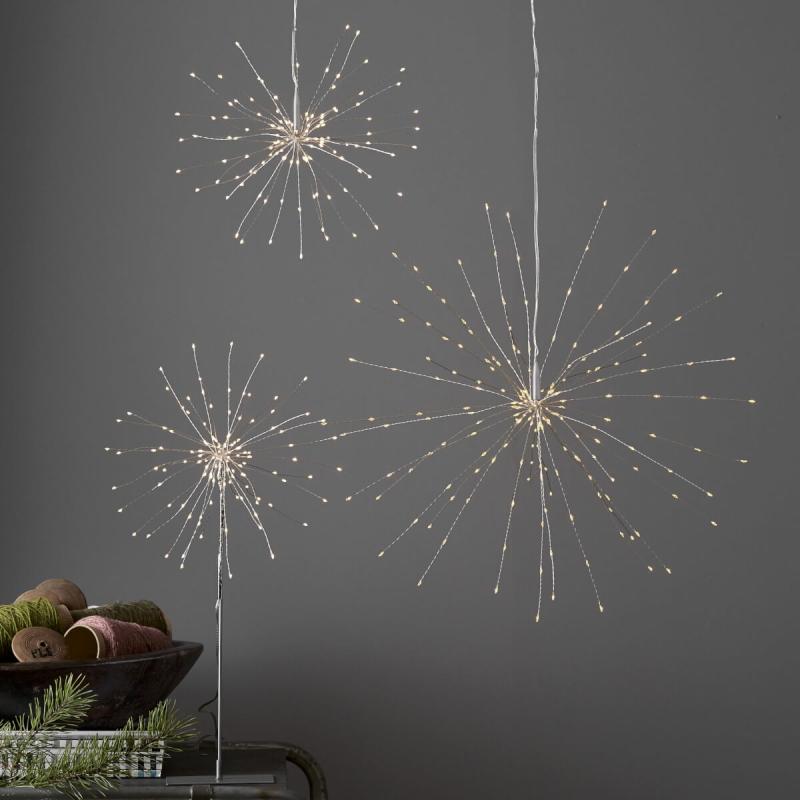 Hur kul är inte den här då? Läckra Firework från Star Trading med silvertrådar som du kan forma nästan precis som du vill, bara din fantasi sätter gränserna, lyser gör de 120 små ljuspunkterna med ett mjukt varmvitt sken.