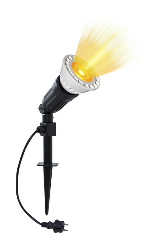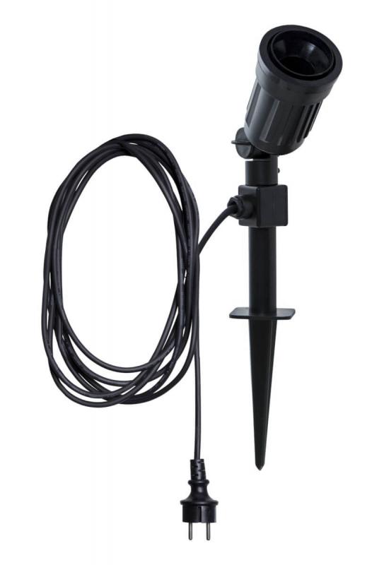 Markspjut för utomhusbruk. Ljuskälla PAR38 med E27-sockel är ett utmärkt val till denna armatur. Spjutet har en 5meters gummikabel och används med fördel för att lysa upp träd och buskar. Ljuskälla säljs separat.