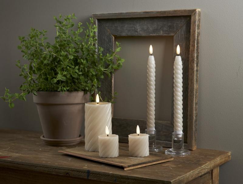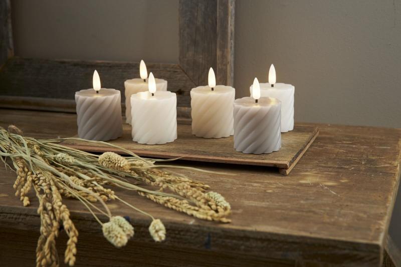 FLAMME SWIRL LED-Blockljus 2-Pack 7,5cm Beige