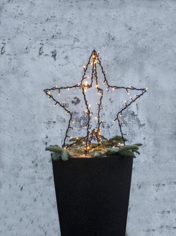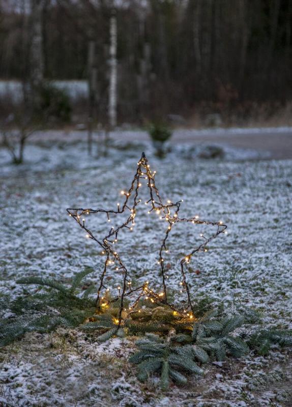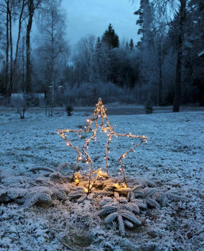 Har du kvar dina sommarkrukor i trädgården under vintern? Varför inte pynta dem med läckra Foldy? Och du? Har du ingen kruka så går det lika bra att trycka ner den i rabatten eller gräsmattan, vacker stjärna som lyser med ett varmt och behagligt sken! Höjd 55 cm.