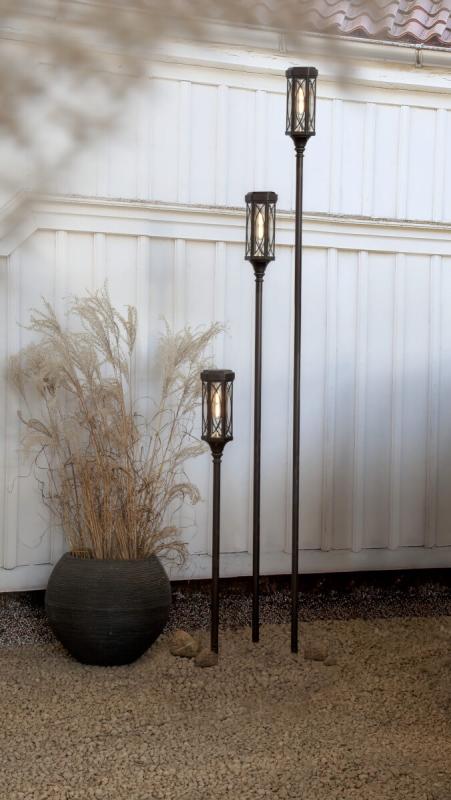 FOLKE Solcells-pollare Ställbar höjd 1,8m Brun