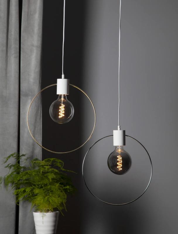Forever, vilken vacker Fönsterlampa eller Taklampa om du så vill upphäng i vitt med en ring i mässing! Vilken lampa du vill kombinera underverket med väljer du självklart själv bland alla härliga LED glober. Alldeles lysande!