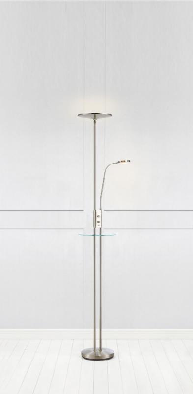 Den klassiska Uplighten men i modern tappning. Här i borstad stål med 18W LED upptill och 5 W LED i läsarmen, den är inte bara utrustad med ett litet glasbord utan även med USB uttag för enkel laddning av din telefon eller läsplatta. Bra tänk hemslöjd ;-)
